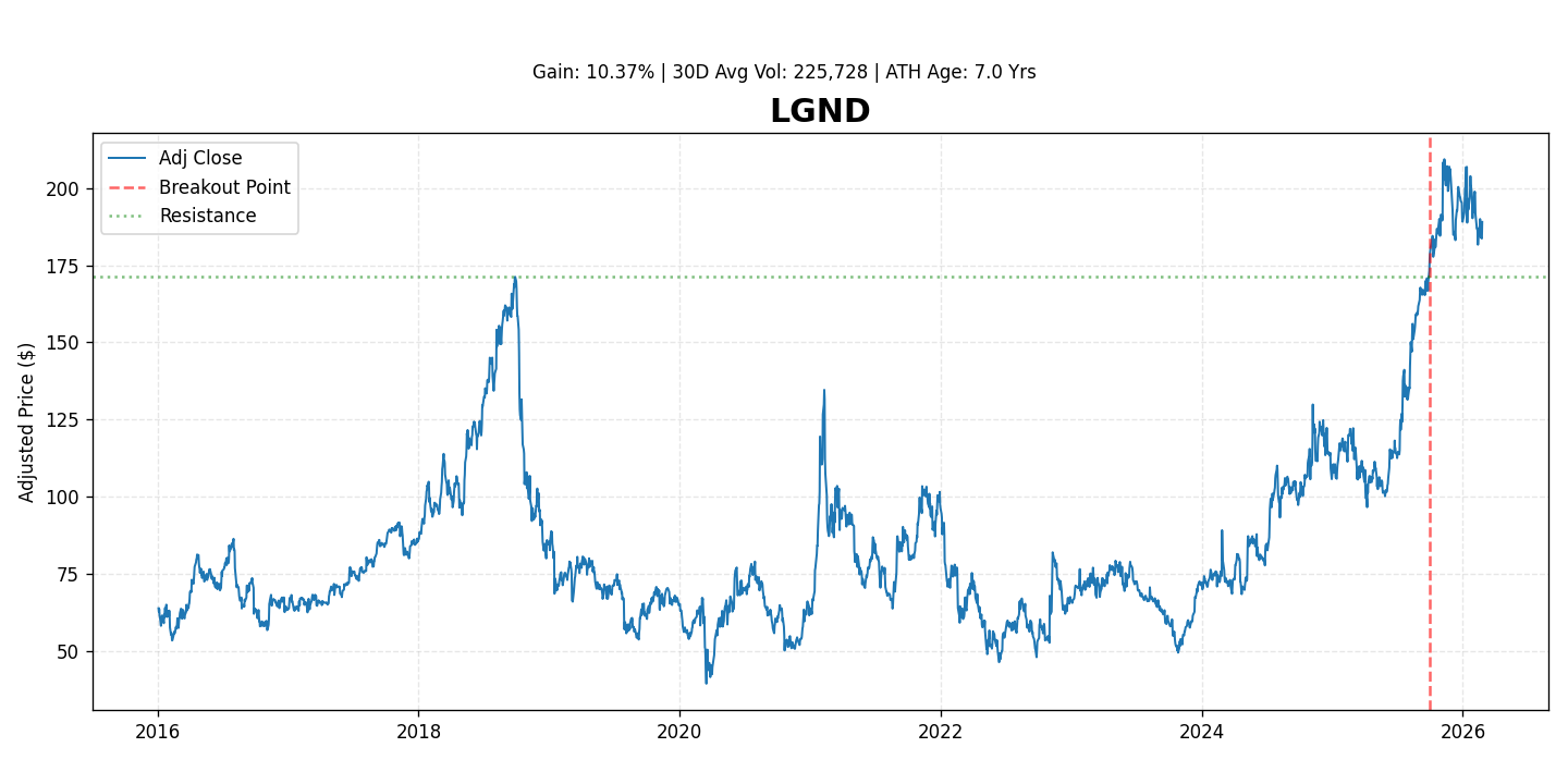 Current Performance Note: LGND has recently gained 10.4% since its breakout.
