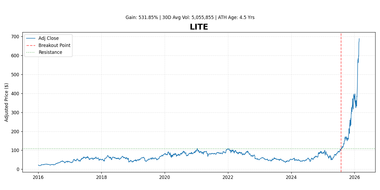 Lumentum Holdings Inc. (LITE) is a leading designer and manufacturer of innovative optical and photonic products for use in optical networks and commercial lasers for manufacturing processes and various emerging applications. The company plays a critical role in global connectivity, advanced manufacturing, and next-generation technologies. While the stock has experienced significant appreciation, gaining 531.8% since its breakout, the focus for investors remains on its forward-looking growth trajectory, particularly driven by demand in AI infrastructure, telecom network upgrades, and industrial applications.