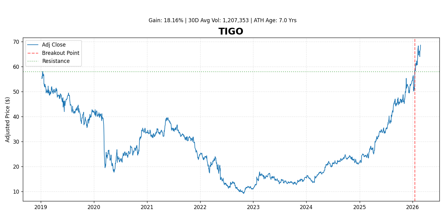 Stock Symbol: TIGO | Recent Performance: Gained 18.2% since breakout.