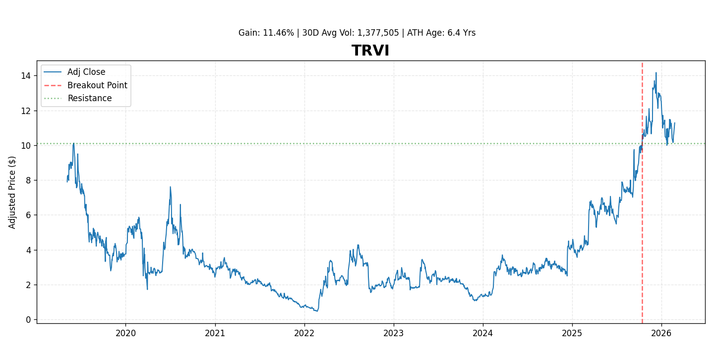 Trevi Therapeutics (NASDAQ: TRVI) is a clinical-stage biopharmaceutical company focused on developing Haduvio (nalbuphine ER) for the treatment of chronic neurological conditions. The stock has recently demonstrated positive momentum, gaining 11.5% since its breakout, reflecting growing investor interest and confidence in its clinical pipeline.