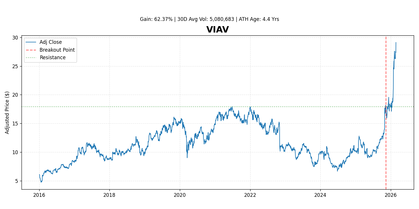 VIAV has experienced a significant appreciation of 62.4% since its recent breakout, driven by several key factors: